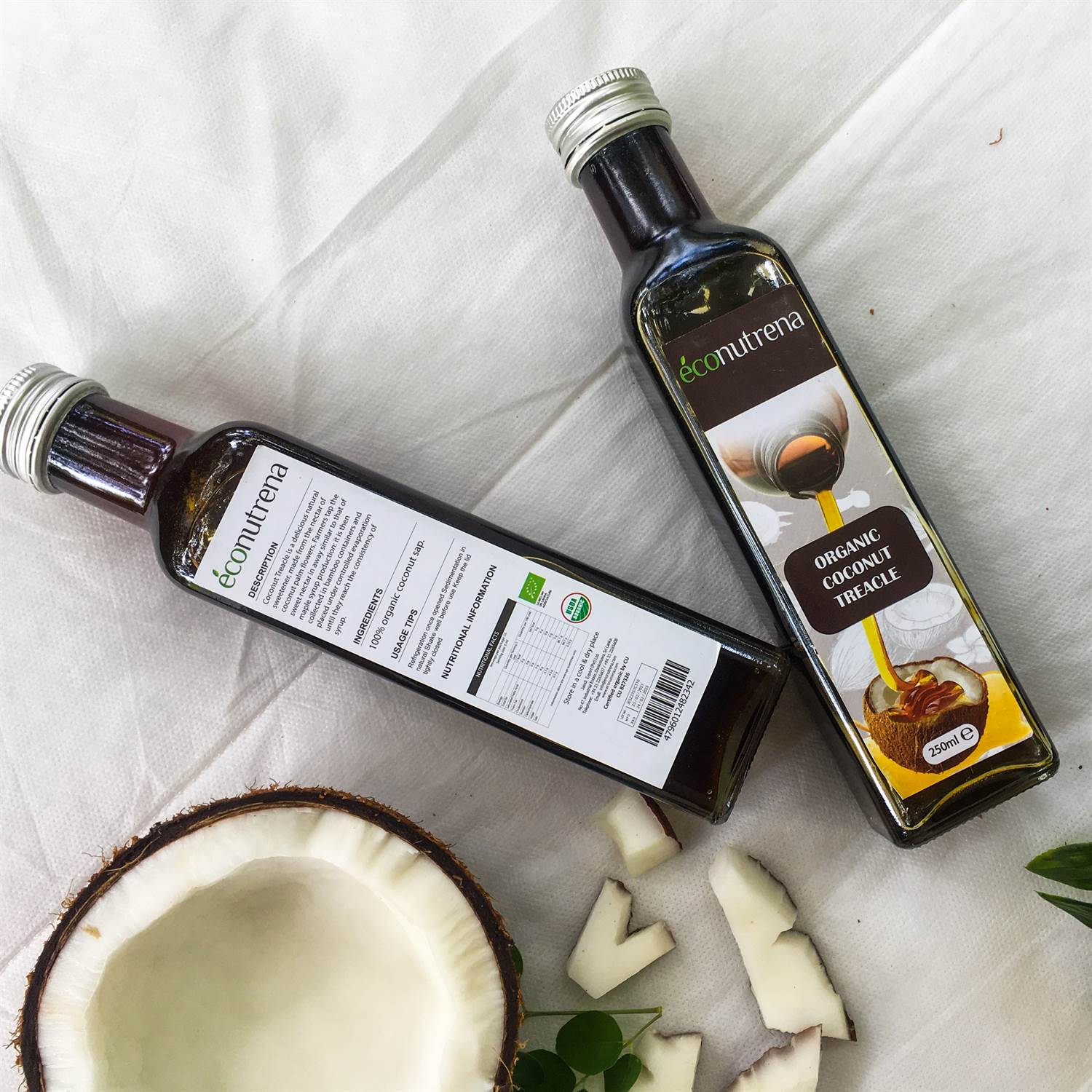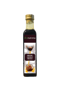 Coconut syrup is made from tapping the sweet nectar of coconut flower, in the similar way maple syrup is produced. These are then evaporated according to the certified organic standards and placed under controlled evaporation till it I reaches the consistency of syrup. It is vegan, and has a lower GI (35) and is ideal alternative for honey or brown sugar. Econutrena coconut syrup is 100% natural and organic, and has a consistency of molasses.