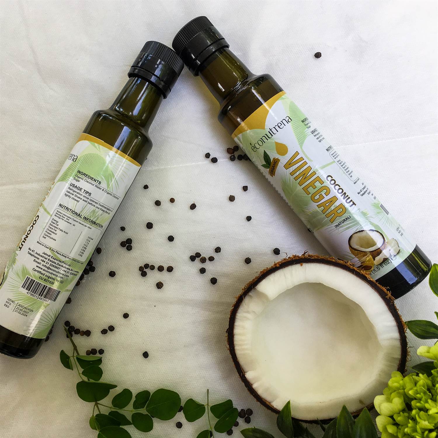 Coconut water vinegar is made by 2 distinct biological processes, both the results of the action of microorganisms that turn carbohydrates into acetic acid. This is produced by using coconut water and it is low in acidity.